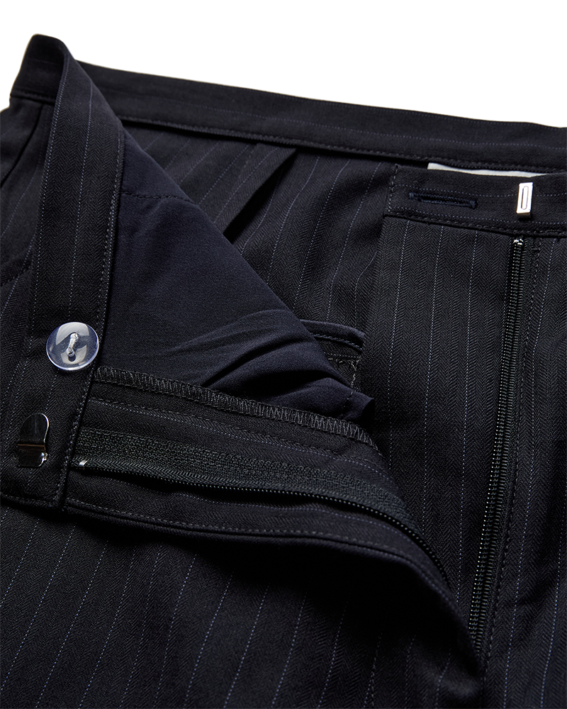Högmidjade byxor i ett kritstrecksrandigt material med dold hyska och hakknäppning, sneda sidfickor och raka, vida ben för en elegant look.