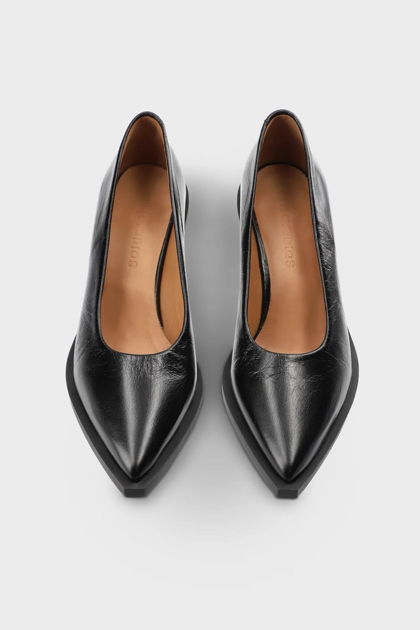 Dessa pumps tillverkade av mjukt, slätt läder med en glansig finish är ett riktigt blickfång. Den smala silhuetten med spetsig tå skapar en feminin look, samtidigt som komforten garanteras. Logotypen på innersulan och den karaktäristiska sulan med en distinkt klack kompletterar designen.