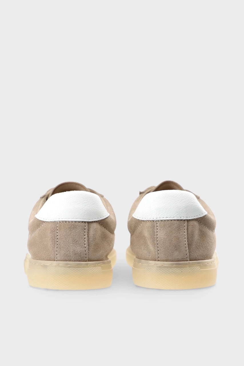 Låga sneakers tillverkade i ett mycket mjukt mockatyg med vita läderdetaljer. Sulan är tillverkad av ett bekvämt gummimaterial.