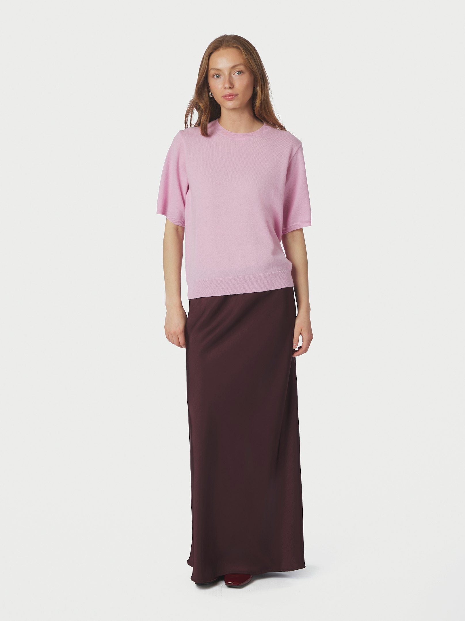 Stickad t-shirt med en ren look. Formen är semi-tajt och kvaliteten är mjuk.
