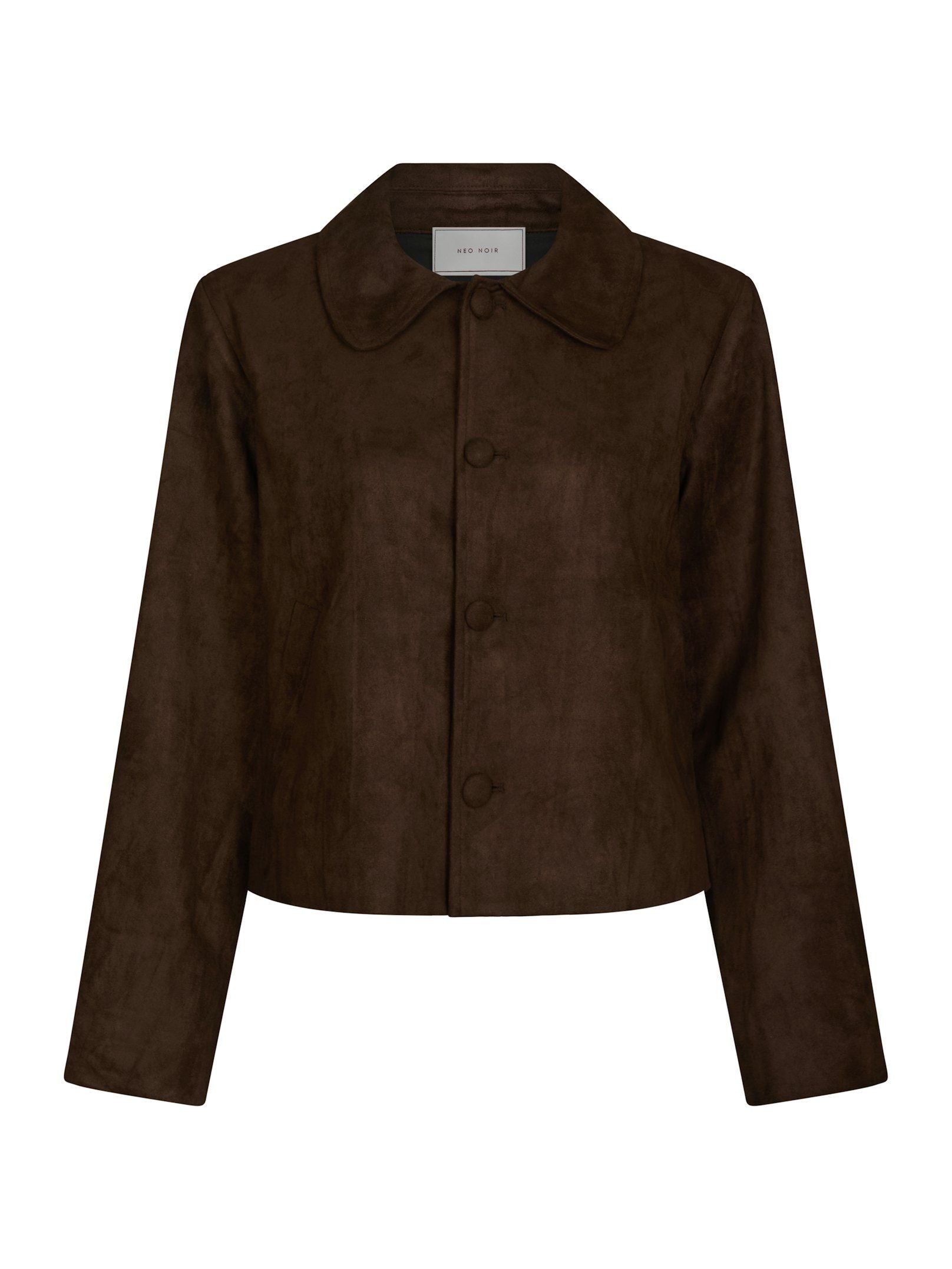 Cool mockasinsjacka med fickor fram. Jackan kommer i en kvalitet av konstmocka. Modellen är 176 cm och bär storlek 36.