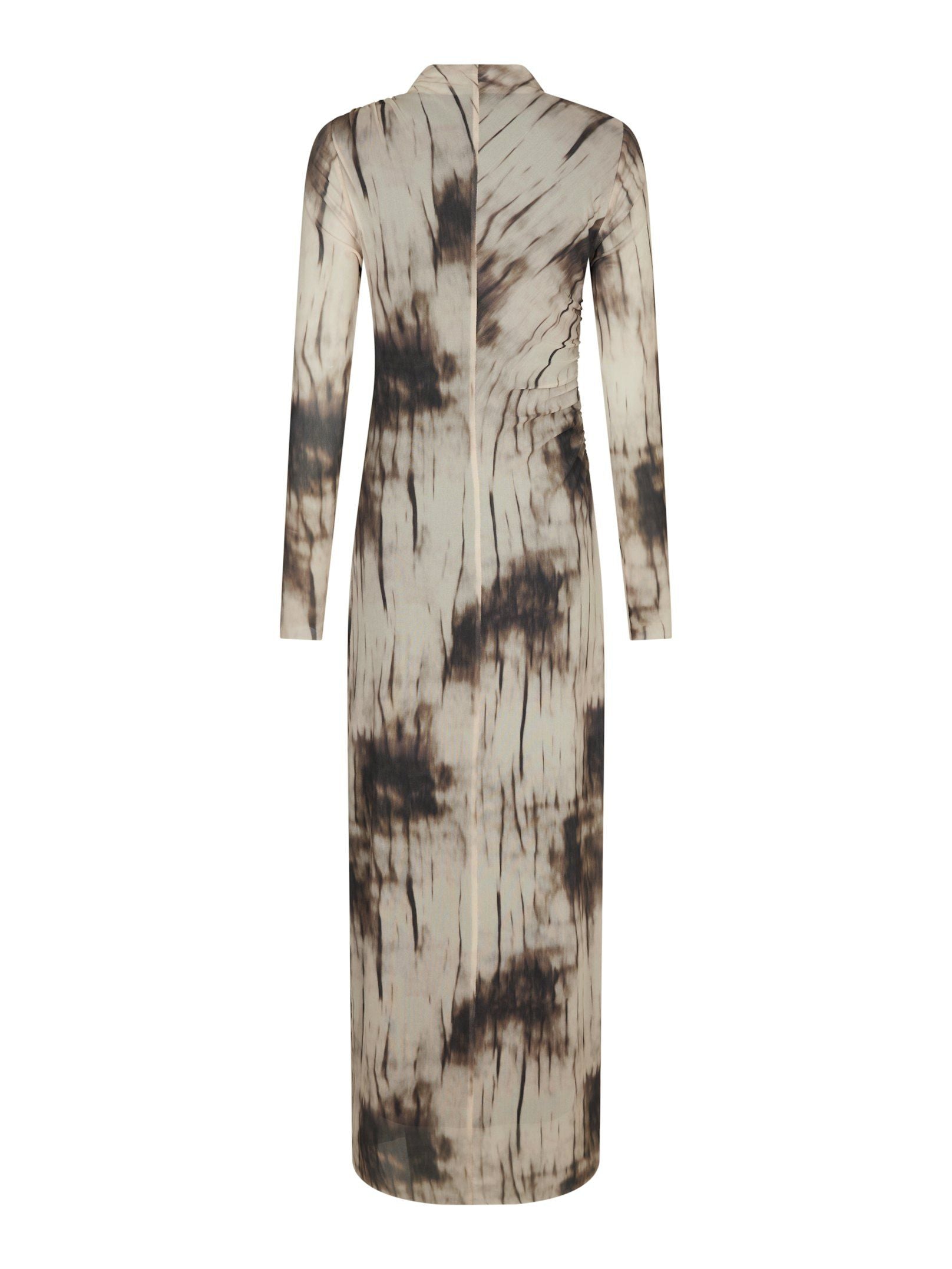 Lång meshklänning med rynkdetaljer. Klänningen kommer i ett bleknat mönster. Modellen är 176 cm lång och bär storlek 36.
